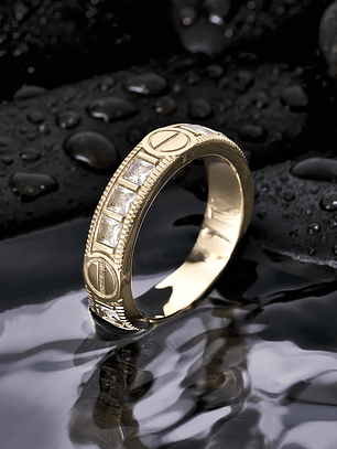 Anillo en oro laminado18k con un diseño único incrustaciones en circonias, y que permite ser personalizable.